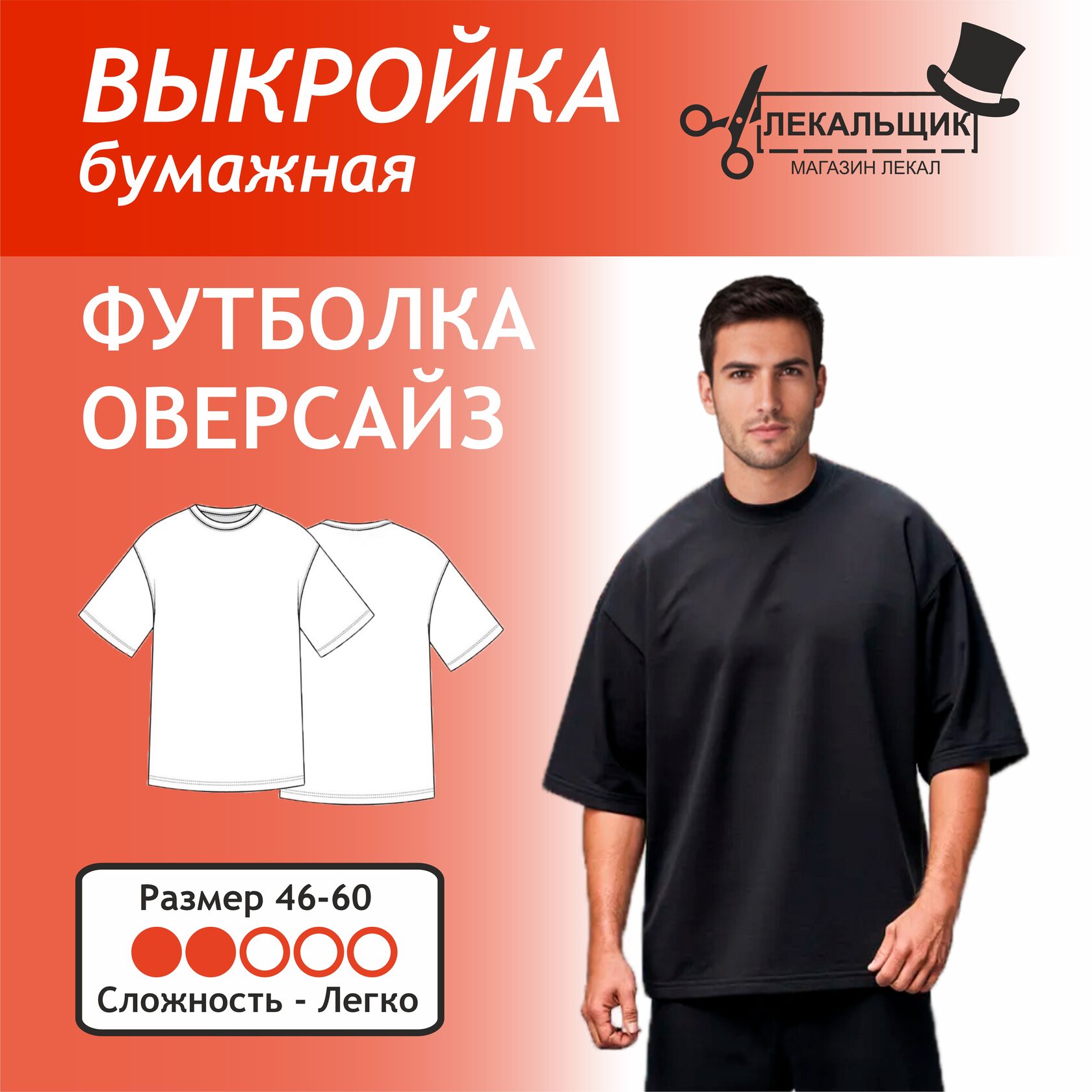 Выкройка представлена в натуральную величину, что упрощает процесс раскроя и шитья. Модель футболки подходит для всех, размеры 46-60, рост 164-182. Она имеет свободный оверсайз крой с длиной до середины бедра, втачными рукавами и округлой горловиной. Низ рукавов и изделия обработан вподгибку, что придает изделию аккуратный вид.